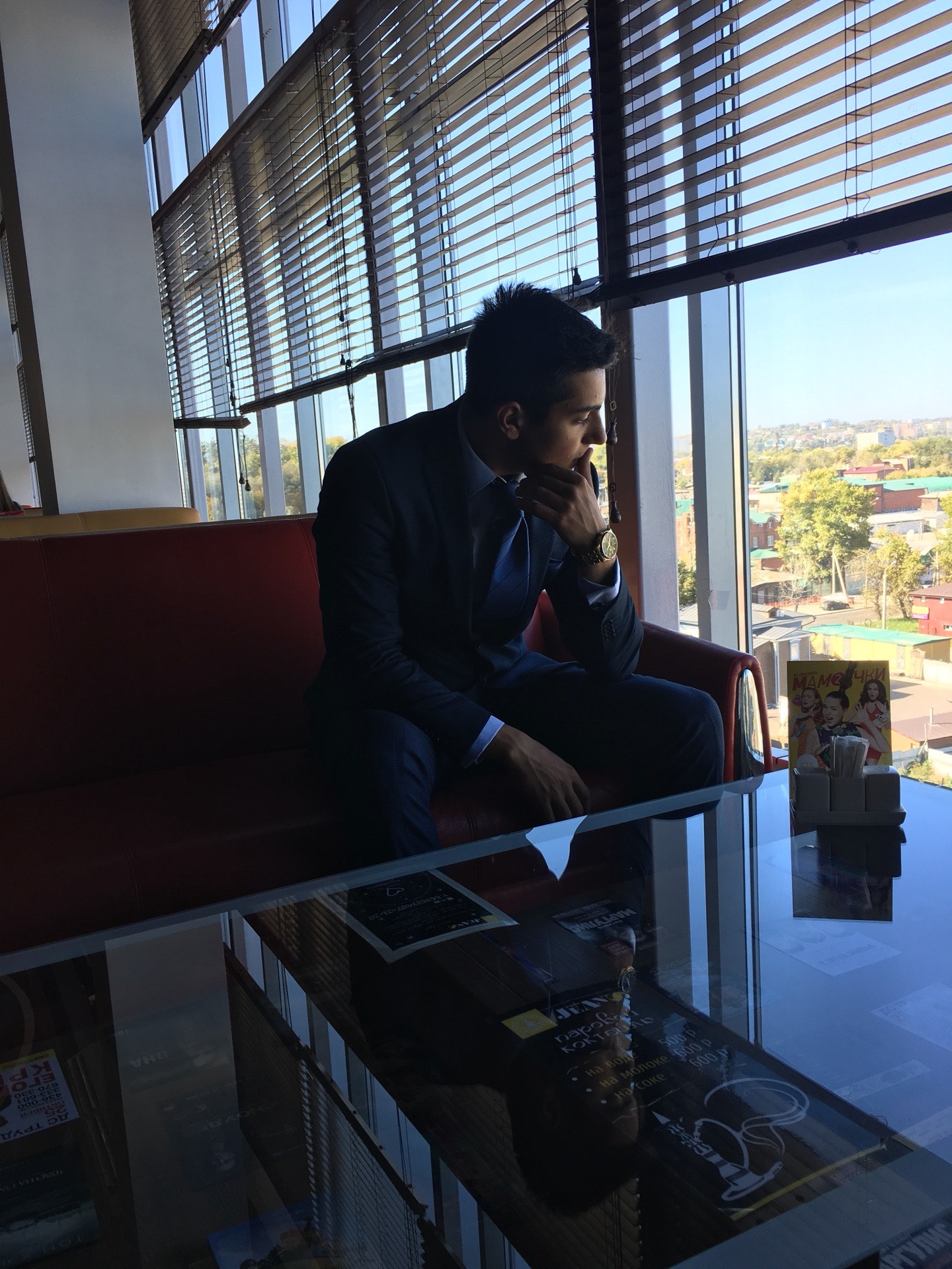 Панорамный вид на город из окна. Кофе так себе.